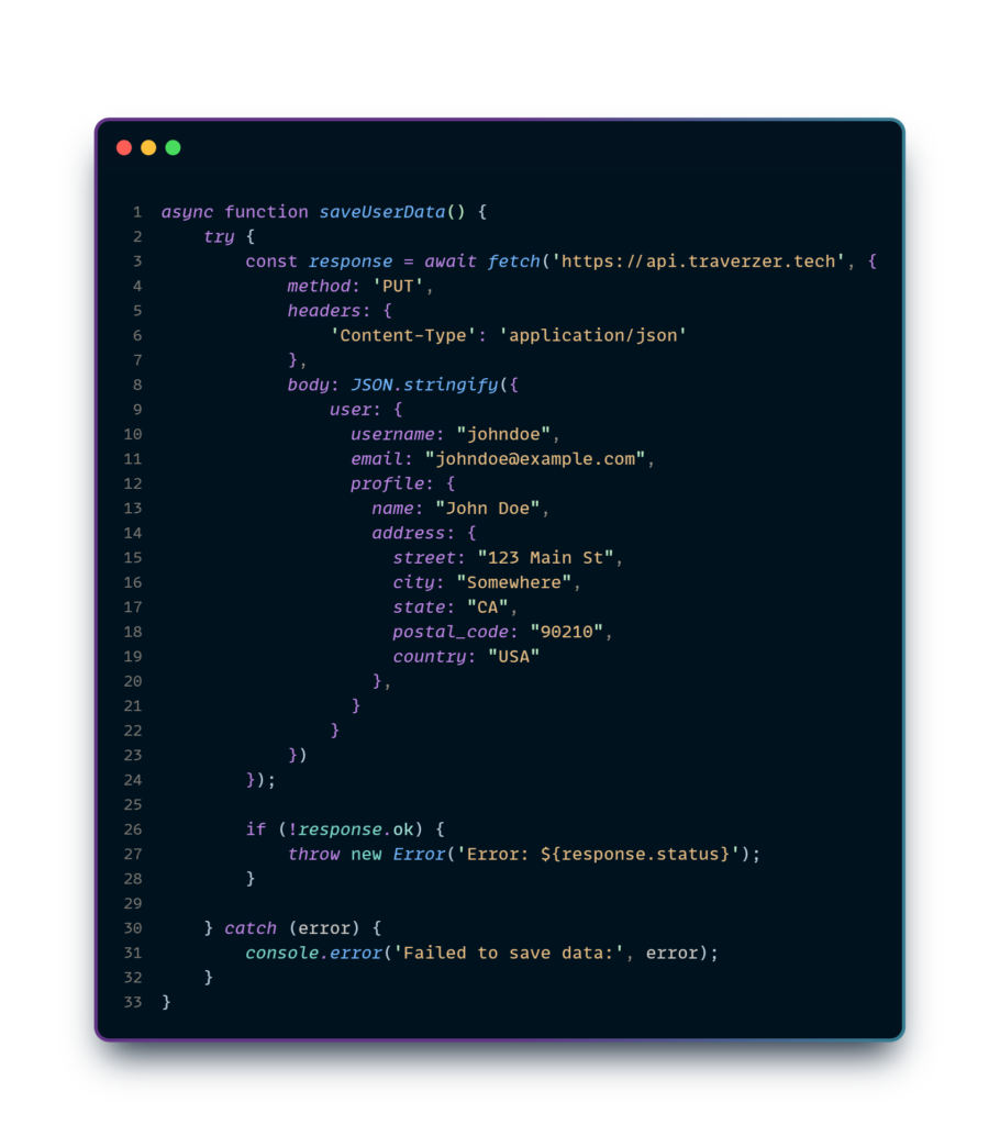 Your code becomes streamlined with pure JavaScript—no need for libraries or SDKs. Just straightforward, easy-to-use JSON for effortless development.